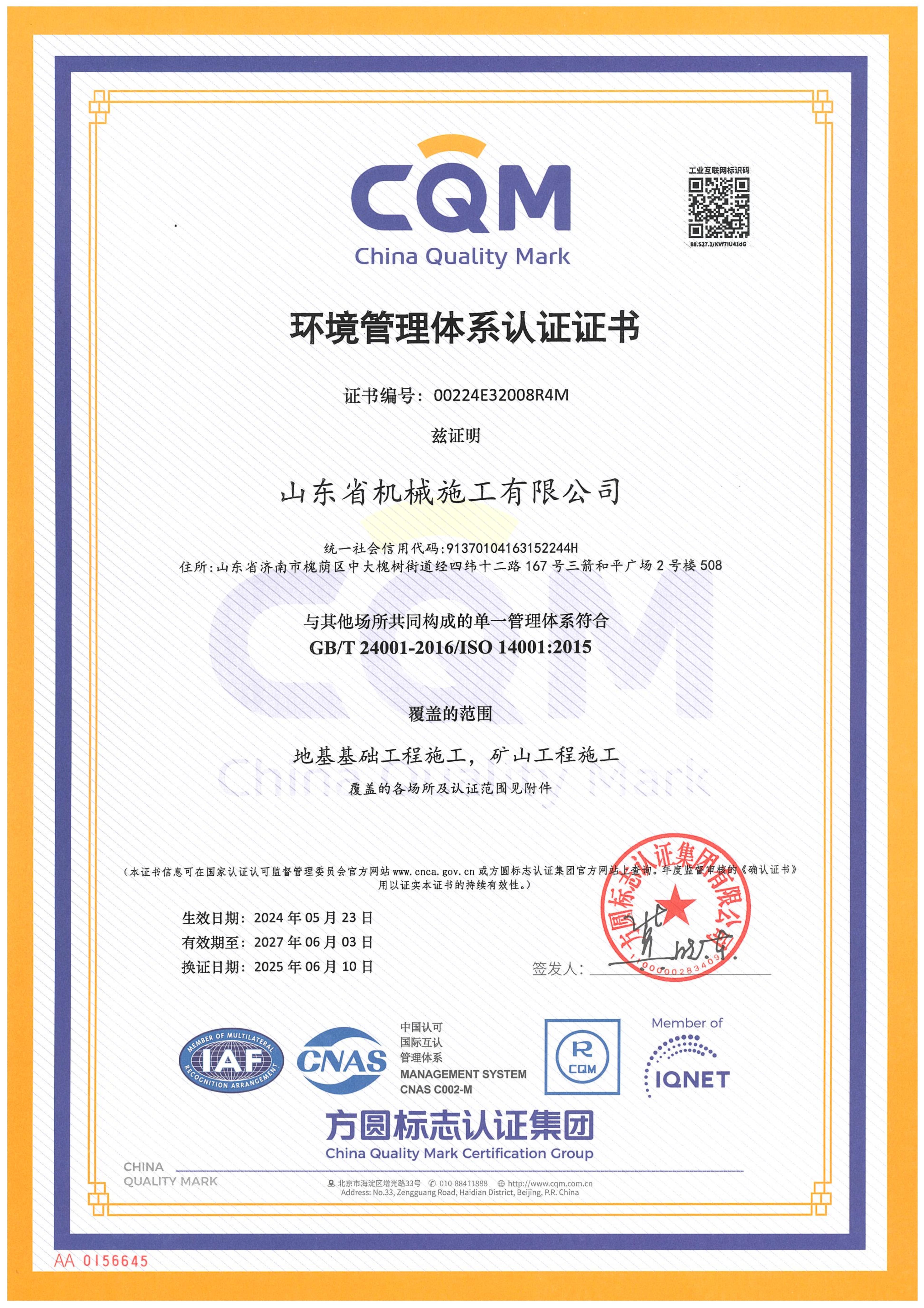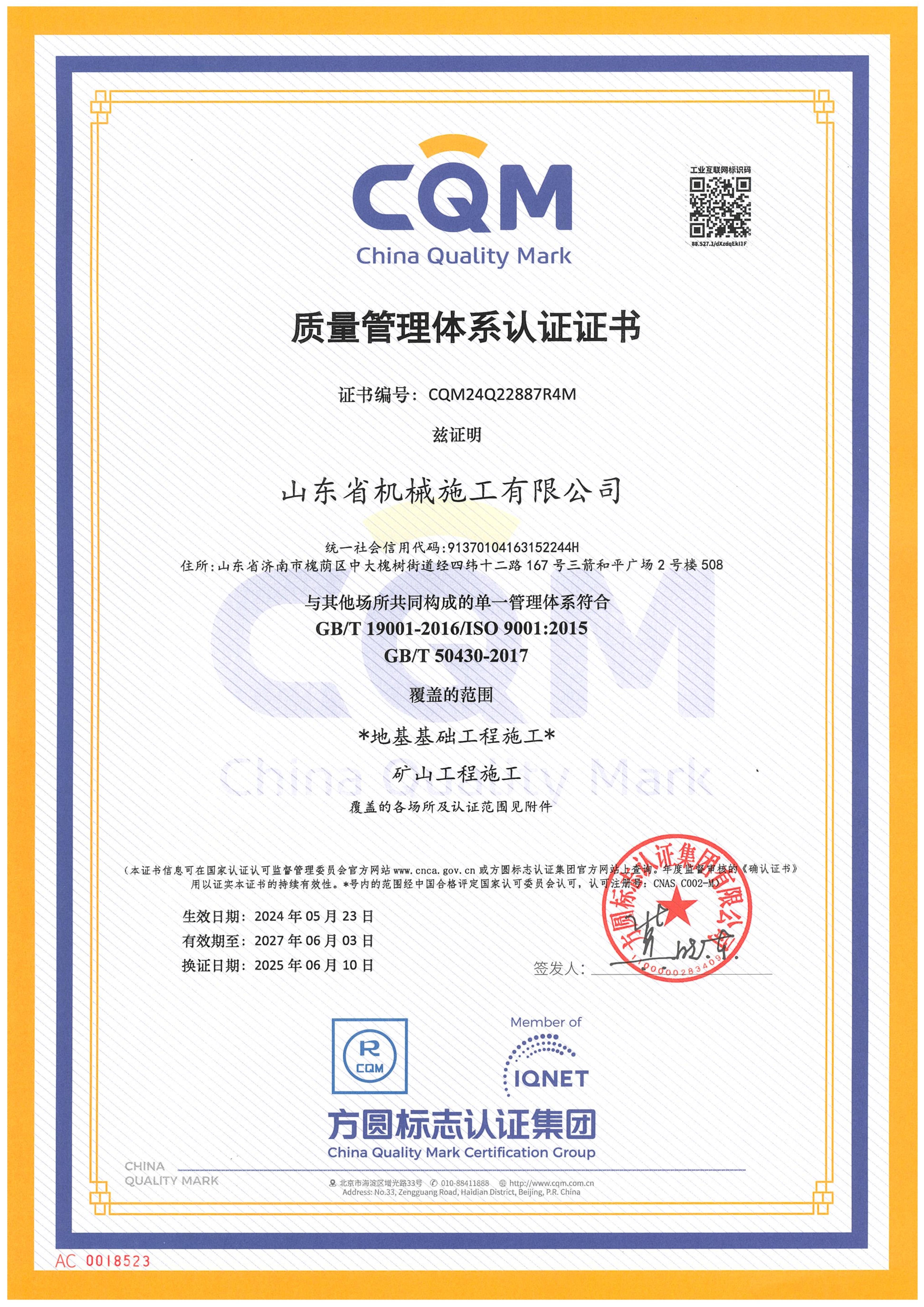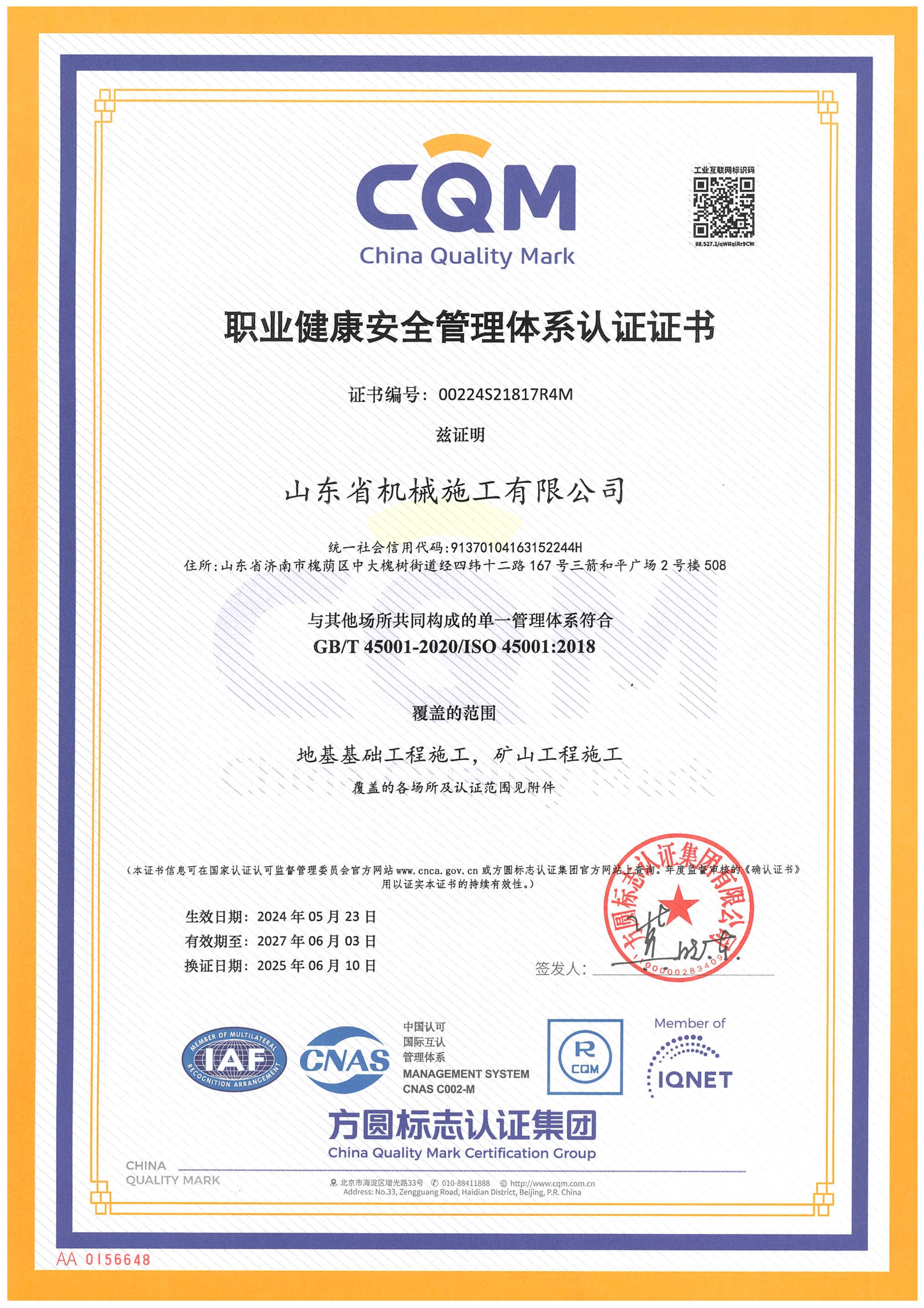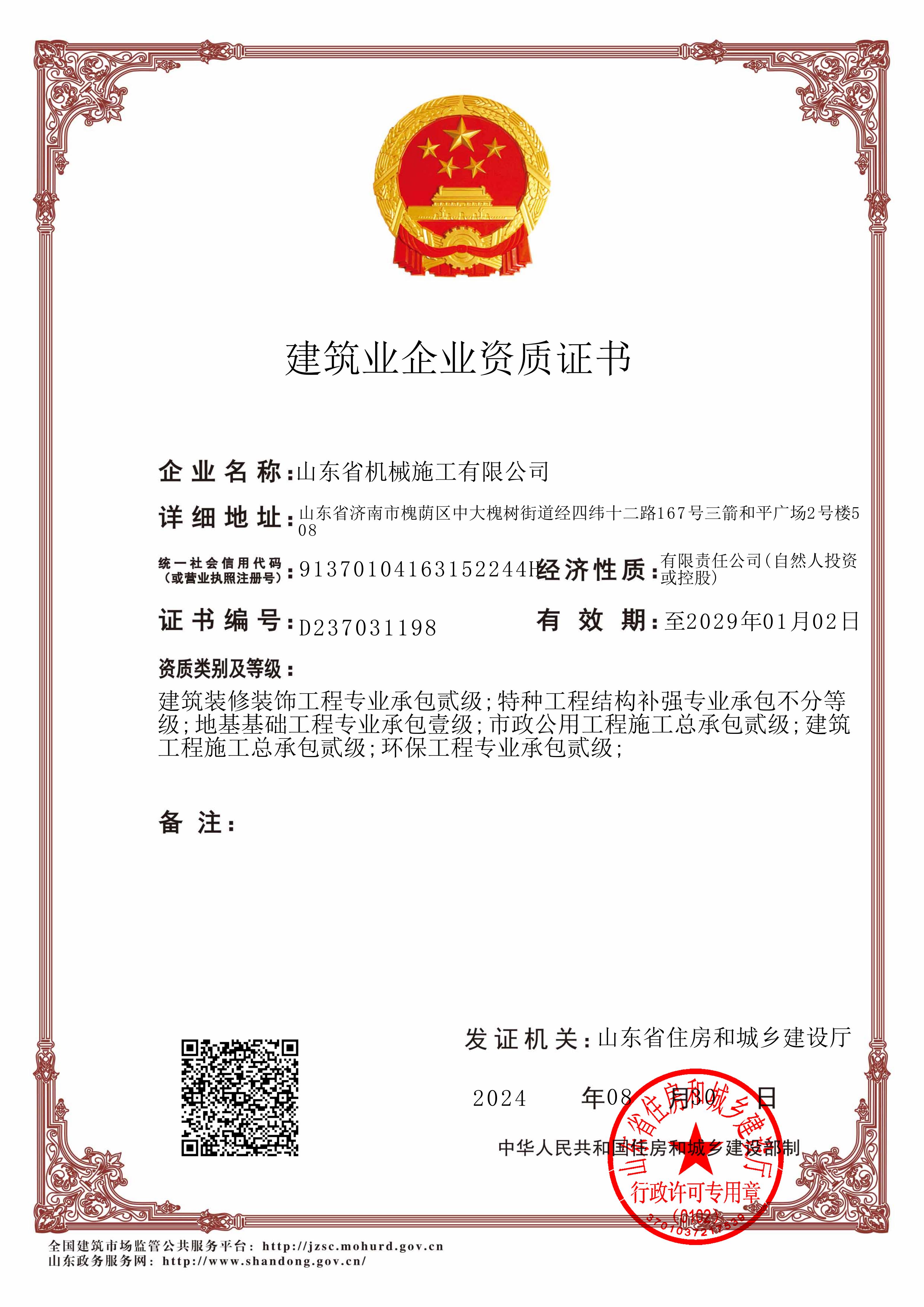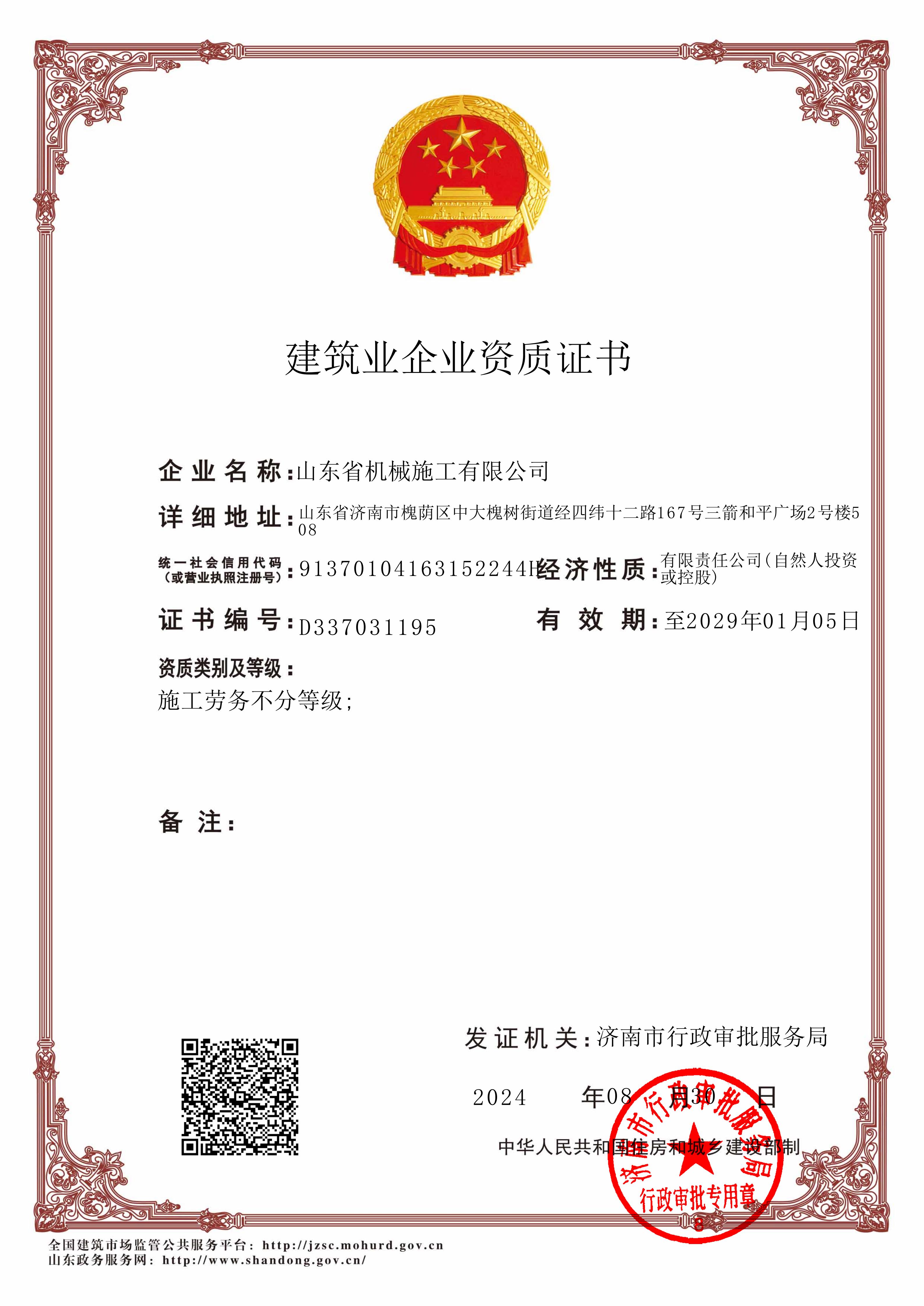 山東省機(jī)械施工有限公司資質(zhì)證書