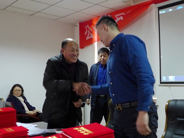 會上,監(jiān)事會劉建明做了監(jiān)事報告,總會計師徐占泉做財務(wù)報告;董事長與內(nèi)部分公司承包人簽訂了2018年度承包責(zé)任書、并表決通過了多項工作報告和方案。