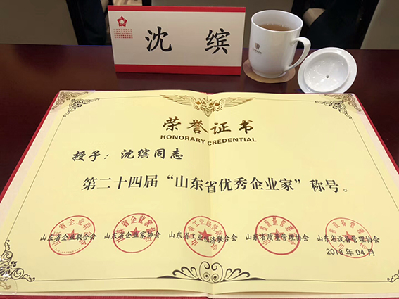 公司董事長被授予“山東省優(yōu)秀企業(yè)家”榮譽(yù)稱號(hào)