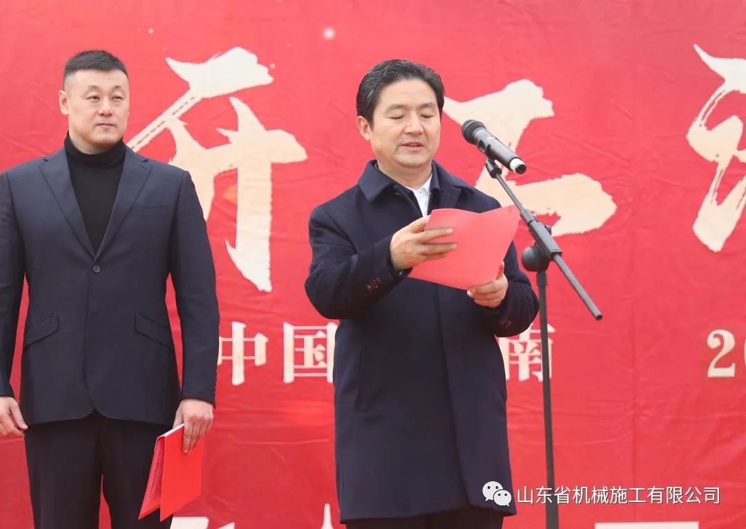 章丘區(qū)委副書記、區(qū)長邊祥同志進行致辭并宣布項目開工。在齊鳴的音樂聲、禮炮聲以及現(xiàn)場熱烈的掌聲中,各位蒞臨活動的領(lǐng)導(dǎo)、嘉賓為山東機施綜合產(chǎn)業(yè)園奠下了重要的一锨土。
