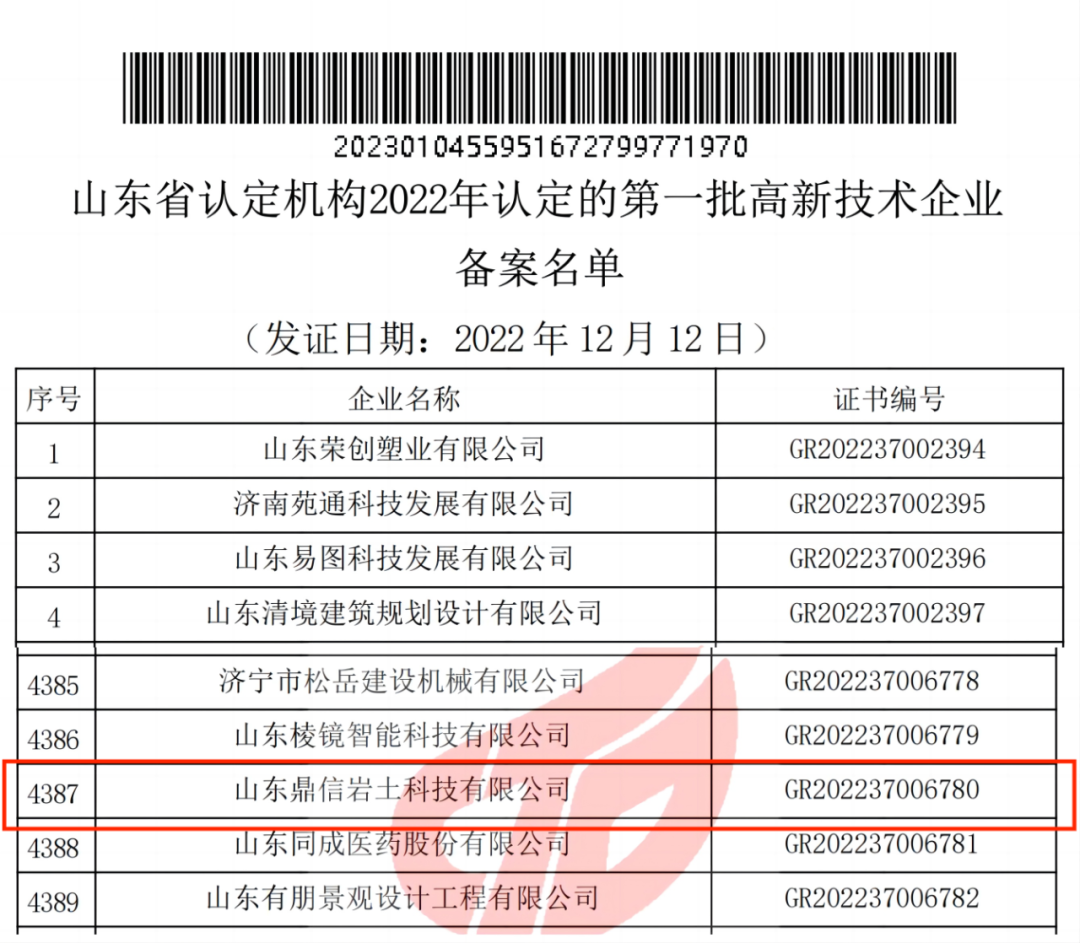 喜報 | 山東省機械施工有限公司全資子公司山東鼎信巖土科技有限公司榮獲國家級“高新技術企業(yè)”殊榮