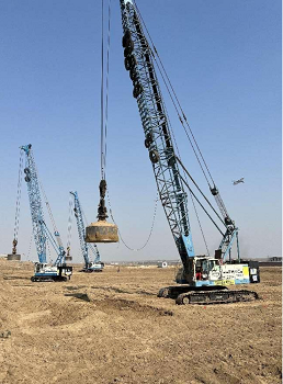 近日,山東省機(jī)械施工有限公司中標(biāo)濟(jì)南遙墻國(guó)際機(jī)場(chǎng)二期改擴(kuò)建工程?hào)|飛行區(qū)地基強(qiáng)夯工程項(xiàng)目,總強(qiáng)夯面積約40萬(wàn)平方米,實(shí)現(xiàn)23年度經(jīng)營(yíng)開(kāi)門(mén)紅。為全力支持項(xiàng)目建設(shè),開(kāi)工伊始,公司即投入700余萬(wàn)元新購(gòu)置多臺(tái)施工機(jī)械,現(xiàn)已陸續(xù)投入本項(xiàng)目建設(shè)。