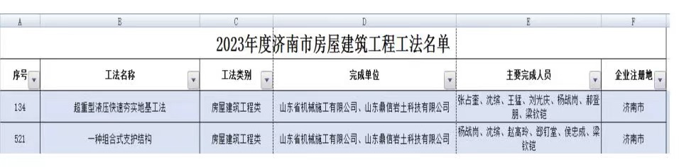 5月26日,由山東省機(jī)械施工有限公司鼎信子公司與第三分公司聯(lián)合研發(fā)的“一種組合式支護(hù)結(jié)構(gòu)”以及鼎信子公司研發(fā)、巖土分公司積極推廣應(yīng)用的“超重型液態(tài)快速夯實(shí)地基工法”,被濟(jì)南市住建局評(píng)定為“2023年濟(jì)南市房屋建筑工程工法”。