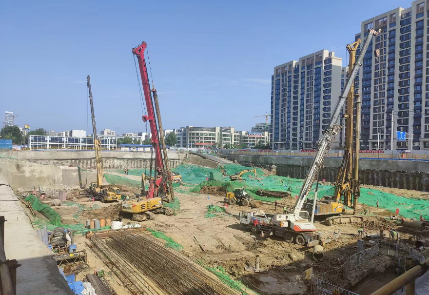 由山東機施第三分公司承建的基坑支護、降水、樁基工程,工程造價1000余萬元。作為本項目的起跑線工程,自開工起便得到天橋區(qū)各界領(lǐng)導的重點關(guān)注;作為天橋控股集團的第一個商業(yè)項目,公司高度重視,提出了高標準的管理目標:工程質(zhì)量“評優(yōu)創(chuàng)杯”,安全文明達到省級安全文明工地標準。