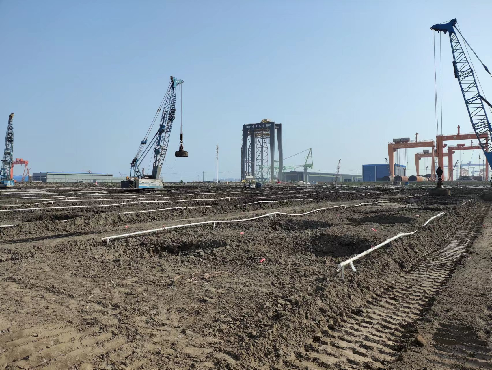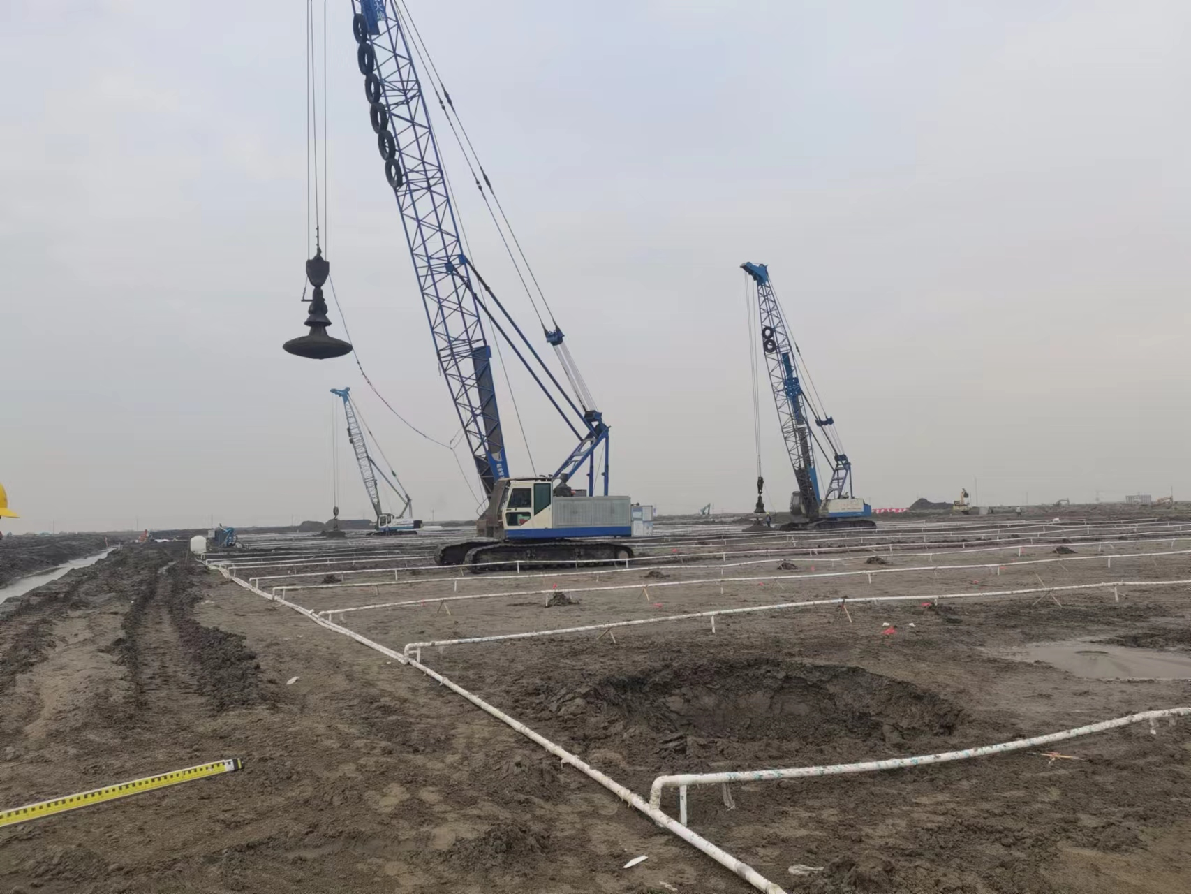 江蘇南通高端建筑智能制造產(chǎn)業(yè)基地項目,為通州灣示范區(qū)今年春季集中開工的重大項目之一,也是中鐵四局落子南通的重大戰(zhàn)略部署,用地約495畝,總投資20億元,建成后將成為行業(yè)領先、國內一流的現(xiàn)代化鋼結構產(chǎn)業(yè)基地。本項目地基處理面積15萬平方米,公司中標后快速行動,組織4臺強夯機、10臺套降水設備進場施工,目前工程正在緊張施工中。